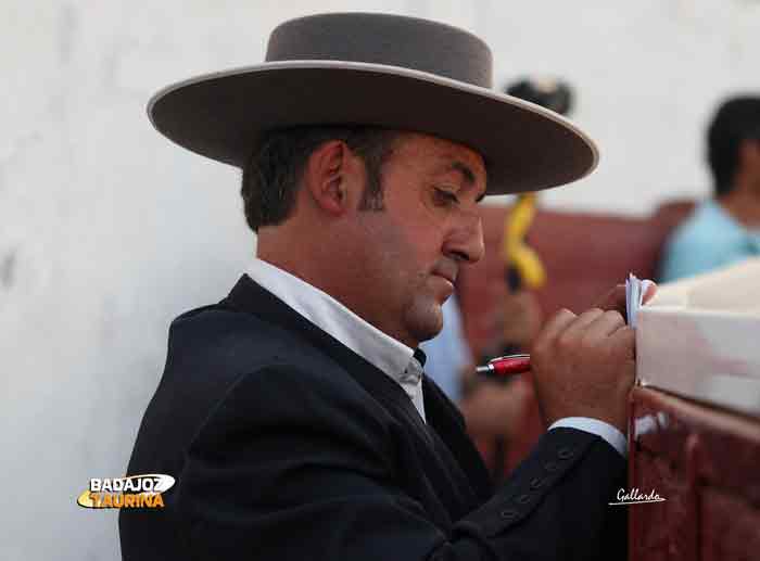 Manuel Linares, el mayoral de Cayetano Muñoz, tomando notas en el callejón.